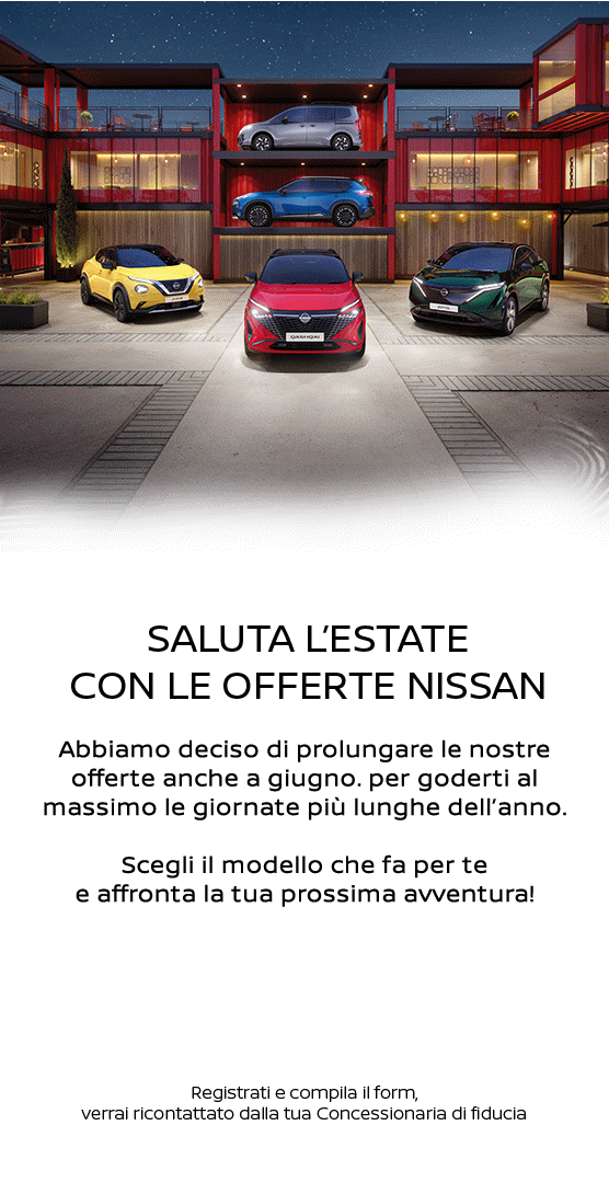 Concessionaria # Seleziona concessionario (AG) RN MOTORS Via Unita' di Italia snc AGRIGENTO (AL) - RESICAR Via Clemente 41 SPINETTA MARENGO (AN) - CONERO CAR Strada Statale 16 - KM. 309,600 CAMERANO (AP) - EMIL AUTOS Via della Liberazione, 110 SAN BENEDETTO DEL TRONTO (AR) - TOSONI AUTO Via Luigi Galvani, 14 AREZZO (AT) - ERREBI C.so Alessandria, 561 ASTI (AV) - AUTOMASTER Via Nazionale Torrette, 122 MERCOGLIANO (BA) - PICCA MOTORS S. S. 96 - KM 119, 500 MODUGNO (BG) - GRUPPO CARMELI Via Dalmine, 2 CURNO (BI) - AUTOVAR Via Galimberti Tancredi, 3 BIELLA (BL) - GIDALCAR Via Tiziano Vecellio, 14 BELLUNO (BO) - ALMA Via Emilia, 295 SAN LAZZARO DI SAVENA (BO) - ALMA Via Zanardi, 39 BOLOGNA (BO) - ALMA Via Selice, 185/A IMOLA (BR) - FIVE MOTORS Via Enrico Fermi, 5/D - Zona Industriale BRINDISI (BS) - GRUPPO CARMELI Via Diaz, 22 SAN ZENO NAVIGLIO (BS) - VICTORIA Via Vallecamonica, 2 BRESCIA (BT) - PICCA MOTORS Via Trani, 316 BARLETTA (CA) - DE CARROZ Via dei Carroz, 4 CAGLIARI (CB) - PASQUARELLI Via Arturo Giovannitti, 10 CAMPOBASSO (CE) - AUTOCASERTA S.S. Sannitica, 265 - Km 27+400 MARCIANISE (CH) - PASQUARELLI Via Piane S.Angelo, 202 S.SALVO (CN) - AUTO MATTIAUDA Via Torino, 381 CUNEO (CN) - ERREBI Corso Asti, angolo strada Porini snc ALBA (CO) - CLERICI AUTO Via Tentorio, 11 COMO (CO) - CLERICI AUTO Via Piemonte, 3 - Loc. Mirabello CANTU' (CR) - NINI CAR Via Degli Artigiani, 1/3 VAIANO CREMASCO (CR) - GRUPPO CARMELI Via Milano, 18 CREMONA (CS) - CHIAPPETTA MOTORI Via Roald Amundsen, 19 RENDE (CS) - CHIAPPETTA MOTORI C.so da Salice - S.S. 106 Bis CORIGLIANO CALABRO (CT) - COMER SUD Via Acquicella Porto CATANIA (CZ) - BENCIVENNI Viale Europa, Loc. Germaneto CATANZARO (FC) - DE STEFANI GROUP Via Thomas Alva Edison 20 FORLI (FC) - DE STEFANI GROUP Via Ravennate, 1550 CESENA (FE) - AUTO PO Via Traversagno, 49 FERRARA (FG) - PICCA MOTORS Via Napoli Km 1.700 FOGGIA (FI) - BRANDINI Viale dei Mille,142 FIRENZE (FI) - BRANDINI Via Arturo Chiari 9/13 FIRENZE (FI) - BROGI&COLLITORTI Via di Bronciana snc - Trav. Via Santi Loc. Terrafino EMPOLI (FR) - X-CAR Via Volsci, 75 FROSINONE (GE) - CARFIN Via Luigi Perini, 50 GENOVA (IM) - RIVIERAUTO GALVAGNO Via Argine Destro, 605 IMPERIA (LC) - NISCAR Via Spluga, 70 OLGINATE (LE) - FIVE MOTORS Strada Statale 16, 980 MELPIGNANO (LE) - FIVE MOTORS Viale Risorgimento, 10 LECCE (LI) - BROGI&COLLITORTI Via Firenze, 122 LIVORNO (LO) - NINI CAR S.S. 235 KM 30,400 PIEVE FISSIRAGA (LT) - AUTOCENTRO CARRERA Strada Isonzo 267 LATINA (LU) - CFL Via di Vicopelago, 162/174 PONTETETTO (MB) - RENORD Viale Sicilia, 100 MONZA (MC) - CIMINI Via Roma, 274 MONTECOSARO (ME) - TEAM MOTORS Via Giuseppe Franza 18 MESSINA (MI) - NINI CAR Via Achille Grandi 31 PESCHIERA BORROMEO (MI) - RENORD Via F. Clerici, 6 SESTO SAN GIOVANNI (MI) - RENORD Via dei Missaglia, 75 MILANO (MI) - RICCARDI AUTO Via Boffalora, 75/77 MAGENTA (MI) - RENORD Viale Certosa, 144 MILANO (MN) - GRUPPO FERRARI Strada Marmirolo, 5 PORTO MANTOVANO (MO) - PELLONI Via Nonantolana, 980 MODENA (MO) - PELLONI Via Vasco De Gama, 22/24 CARPI (MO) - PELLONI Via Mazzini, 337-339 SASSUOLO (MT) - PICCA MOTORS Via Enzo Ferrari MATERA (NA) - CENTER Via Antiniana, 36 POZZUOLI (NA) - CENTER Via Nazionale delle Puglie, 245 CASORIA (NO) - RESICAR Via Borgomanero, 10/A PARUZZARO (NO) - RESICAR Via per Novara, 141 CAMERI (NU) - MEREU AUTO Via Devoto - Zona Industriale Pratosardo NUORO (PA) - COMER SUD Via Tasca Lanza, 104 PALERMO (PC) - RENORD Via Emilia Pavese, 215 PIACENZA (PD) - CAMPELLO Via Venezia, 100 PADOVA (PD) - CECCATO AUTOMOBILI via Leonino da Zara, 3 ALBIGNASEGO (PE) - ORIENTE Via Mare Jonio, 3 SPOLTORE (PG) - STAR CAR Via Guido Rossa, 4 PERUGIA (PI) - BROGI&COLLITORTI Via Sterpulino, 20 PISA (PN) - SINA Viale Venezia, 73 PORDENONE (PO) - LENZI AUTOMOBILI Via Montegrappa, 341-353 PRATO (PR) - AUTO&AUTO2 Via Emilia Ovest, 47/A PARMA (PT) - BROGI&COLLITORTI Via Ugo Foscolo, 16 PISTOIA (PU) - DIBA Via Paganini snc PESARO (PV) - RENORD Via Turati, 13 SAN MARTINO SICCOMARIO (PV) - RICCARDI AUTO Via Giovanni Profili, 21 VIGEVANO (RA) - DE STEFANI GROUP Via Faentina, 173 RAVENNA (RE) - AUTO&AUTO2 Via Beniamino Disraeli, 2/20 REGGIO EMILIA (RI) - PACIAUTOQUATTRO Via E. Greco snc RIETI (RM) - AUTOGIAPPONESE Via di Settebagni, 702 ROMA (RM) - AUTOGIAPPONESE Via F. Denza, 54/68 ROMA (RM) - AUTOGIAPPONESE Via della Maglianella 255 ROMA (RM) - MIRAUTO Via di Tor Cervara, 36 ROMA (RM) - MIRAUTO Via di Torre Spaccata, 111 ROMA (RM) - MIRAUTO Via Appia Km 17.400 CIAMPINO (RM) - MIRAUTO Via Pontina, 587 ROMA (RM) - REGIE AUTO Viale della Vittoria, 16 CIVITAVECCHIA (RN) - DI.BA. Via Flaminia, 235 RIMINI (SA) - CENTER Via Nazionale delle Calabrie, 14 SALERNO (SI) - TOSONI AUTO Viale Etruria, 41/43 SARTEANO (SI) - TOSONI AUTO Viale Mengozzi, 3/A - Zona Industriale Isola d'Arbia SIENA (SO) - L'AUTO Via Statale, 5 COSIO VALTELLINO (SR) - C.C.C. COMMERCIAL CAR COMPANY Via Necropoli Del Fusco, snc SIRACUSA (SS) - MEREU AUTO Via Mincio, 26 OLBIA (SS) - MEREU AUTO Zona Industriale Predda Niedda Str. 16 N. 8 SASSARI (SV) - RIVIERAUTO GALVAGNO Via Aurelia, 220 VADO LIGURE (TA) - FIVE MOTORS Viale Unita' d'Italia, 601 TARANTO (TE) - ORIENTE Via Vespucci - Km 82,32 - Loc. Pian Di Accio TERAMO (TN) - CECCATO AUTOMOBILI Via Spini, 4 TRENTO (TN) - ROTALNORD AUTO SS 12 del Brennero - Km 400 CADINO DI FAEDO (TO) - NISSAUTO Via Cigna, 116 TORINO (TO) - NISSAUTO Corso Marche, 32 TORINO (TO) - NISSAUTO Via degli Alpini, 2/A CHIVASSO (TO) - NISSAUTO Corso E. Tazzoli, 201 TORINO (TP) - ESSEPI AUTO Via Carlo Messina, Zona Industriale TRAPANI (TR) - PACIAUTOQUATTRO Via Bruno Capponi, 25 TERNI (TS) - AUTONORD FIORETTO Strada delle Saline, 2 MUGGIA (TV) - BORSOI Via Fabrizio Ing. Plinio, 5 - Zona Industriale ODERZO (TV) - BORSOI Via Castellana, 39 TREVISO (TV) - GIDALCAR Via Palladio 3 SAN FIOR (TV) - SCALCAUTO GROUP Via Circonvallazione Est, 8 CASTELFRANCO VENETO (UD) - AUTONORD FIORETTO Via Nazionale, 29 REANA DEL ROJALE (UK) - UK NISSAN LTD Thames Rd., 343 SILVERTON (